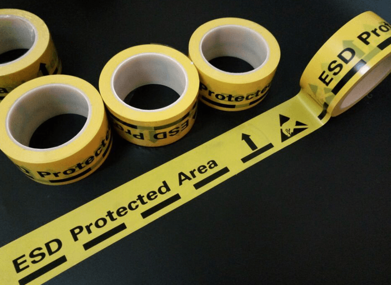 Băng dính chống tĩnh điện: Được làm từ film PVC, với biểu tượng ESD và dòng chữ “ESD protected Area”