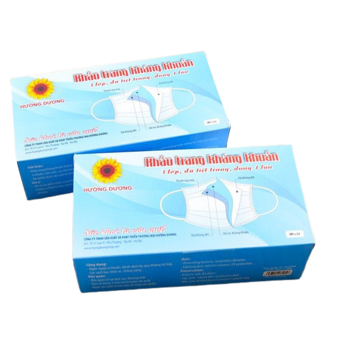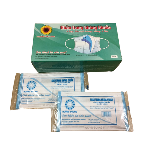 Khẩu trang kháng khuẩn Hướng Dương được sản xuất trên dây chuyền tự động, giúp bảo vệ sức khoẻ người sử dụng trước những tác nhân gây hại như vi khuẩn, nấm mốc, các tác nhân gây bệnh lây lan qua đường hô hấp và các tác nhân gây hại khác trong môi trường ô nhiễm. Sản phẩm được sản xuất từ những nguyên vật liệu nhập khẩu đã qua kiểm định chất lượng kỹ càng, không gây kích ứng da và thân thiện với môi trường
