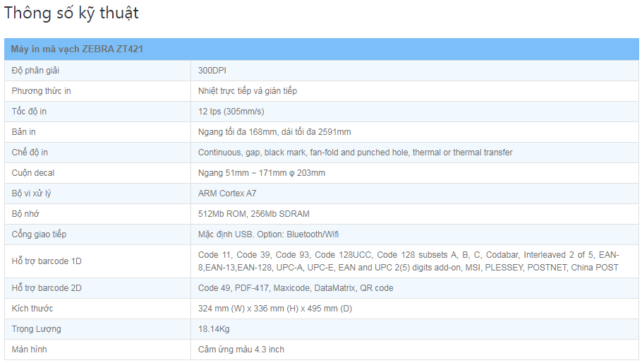 Máy in mã vạch Zebra ZT421 300dpi được cấu tạo từ khung kim loại bền chắc cùng lớp vỏ bên ngoài được gia công tinh tế với phần nhựa trong suốt bên hông thân máy giúp người dùng chủ động trong việc thay thế giấy mực. Có thể in ấn được nhãn rộng lên đến 6 inch, tốc độ in ấn nhanh cùng hiệu suất hoạt động đáng nể máy in mã vạch Zebra ZT421 300dpi là lựa chọn vô cùng thích hợp đối với các nhà máy sản xuất, vận chuyển cũng như các hệ thống bán lẻ, kho hàng với quy mô lớn. Vì thế, còn chần chờ gì nữa mà không liên hệ với chúng tôi để sở hữu ngay chiếc máy in mã vạch vượt trội này.